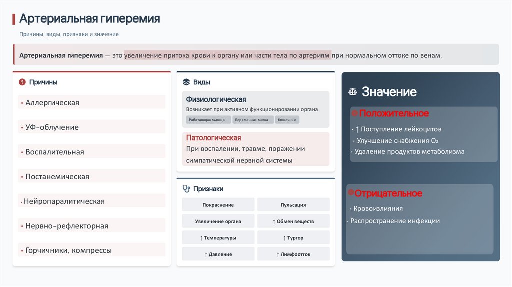 Артериальная гиперемияПричины, виды, признаки и значение