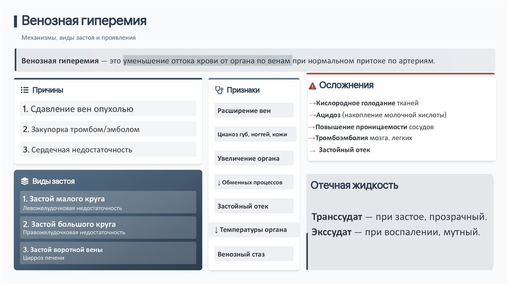 Механизмы, виды застоя, признаки