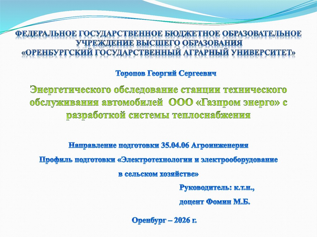 Повышение энергетической эффективности станции техническогообслуживания на основе результатов энергообследования объекта и