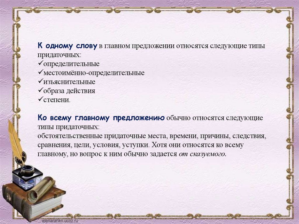 типы придаточных:
