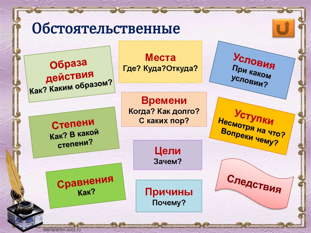 обстоятельственные придаточные места, времени, причины, следствия,
