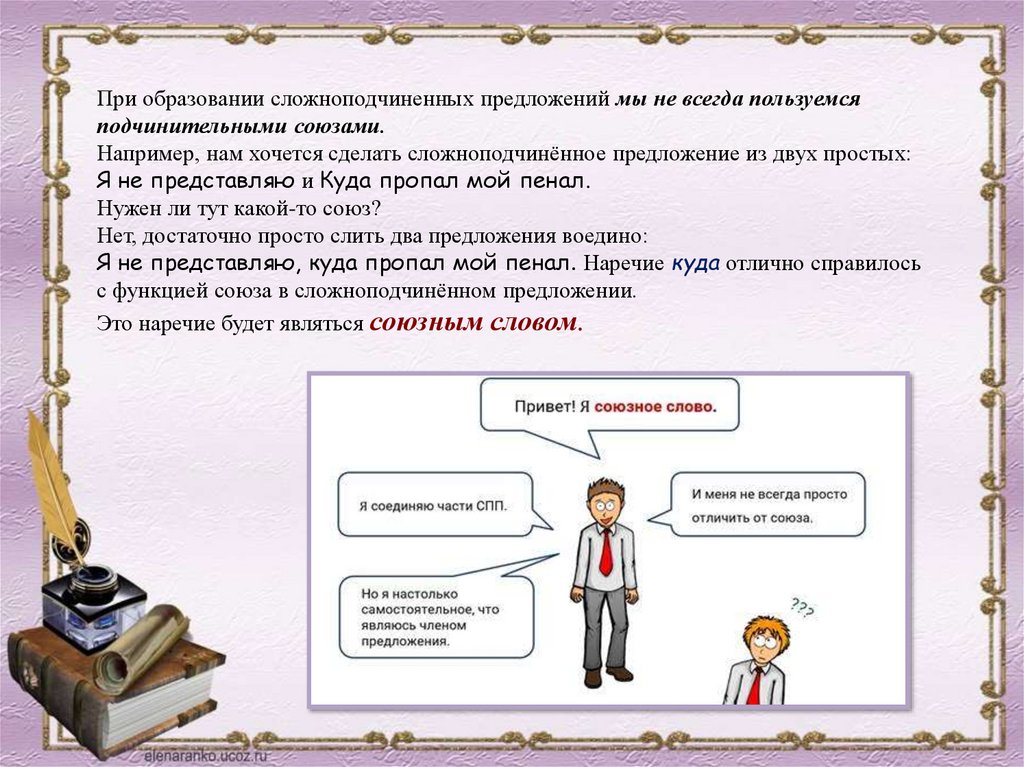 При образовании сложноподчиненных предложений мы не всегда пользуемсяподчинительными союзами.
