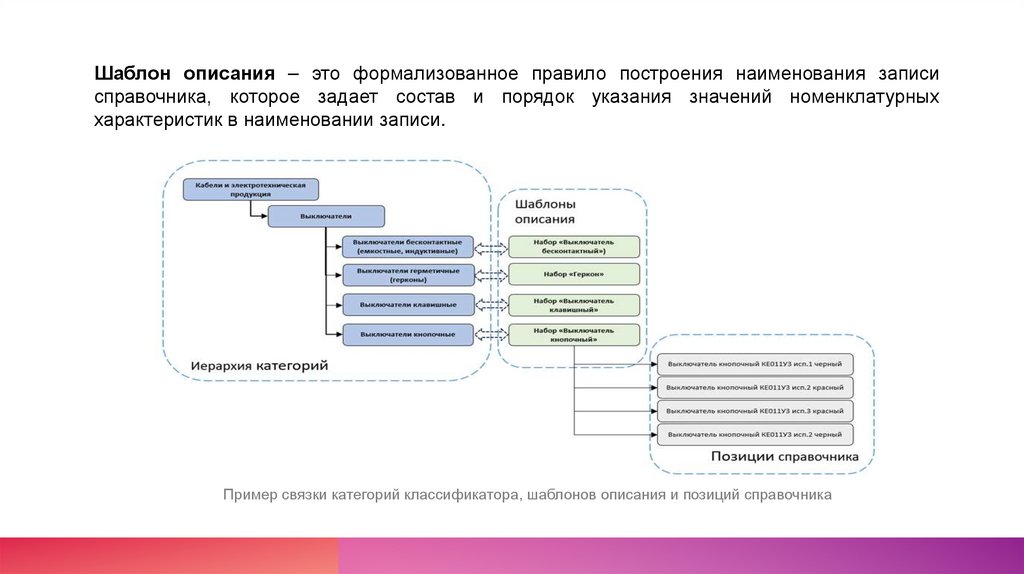 Пример связки категорий классификатора, шаблонов описания и позиций справочника