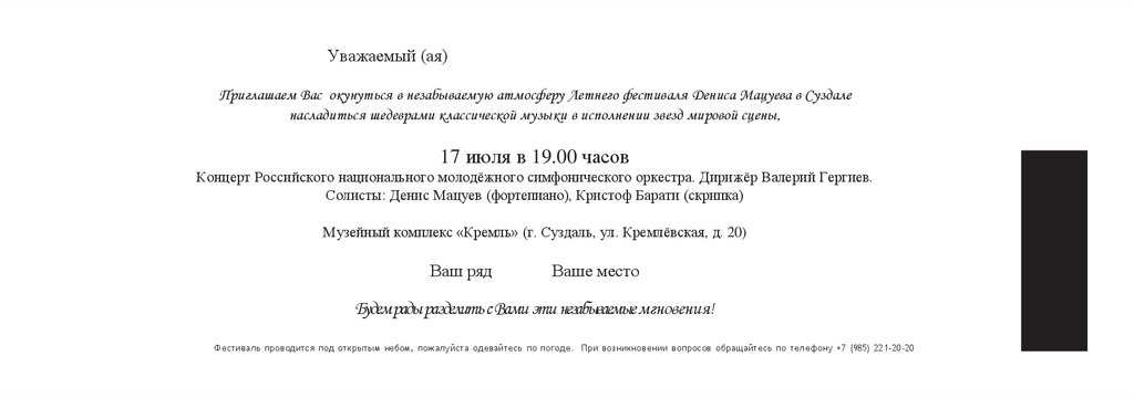 Приглашаем Вас окунуться в незабываемую атмосферу Летнего фестиваля Дениса Мацуева в Суздале