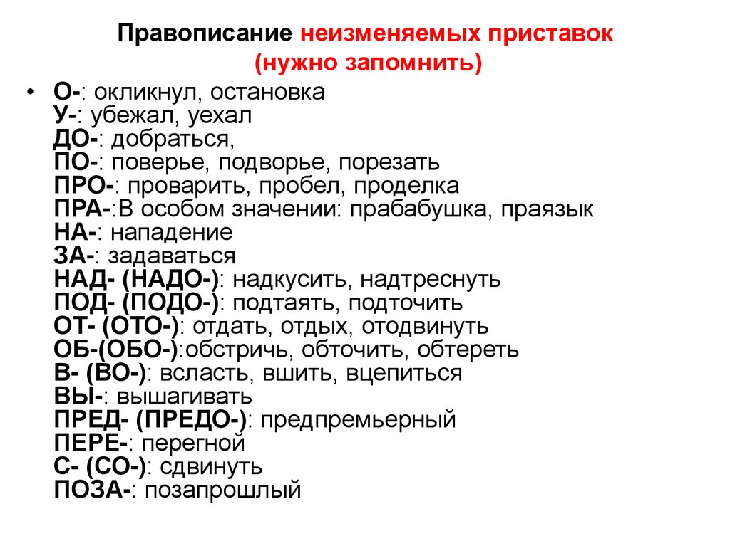 Правописание неизменяемых приставок(нужно запомнить)