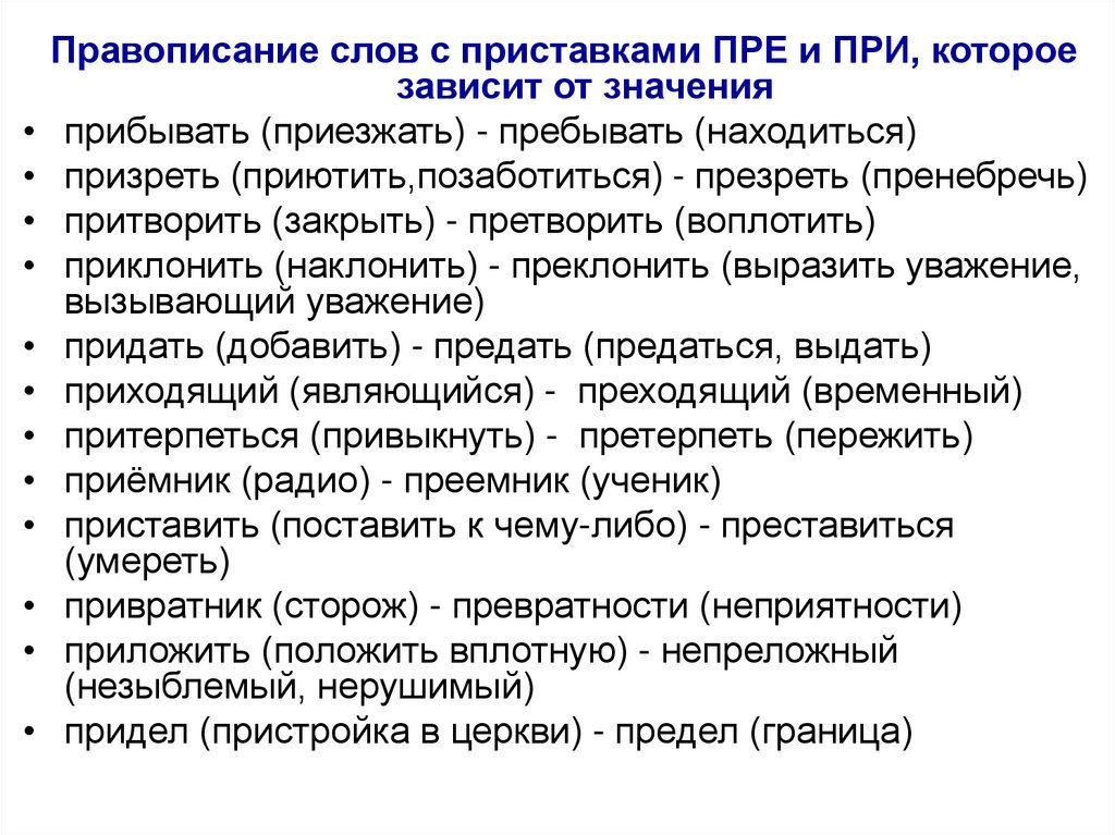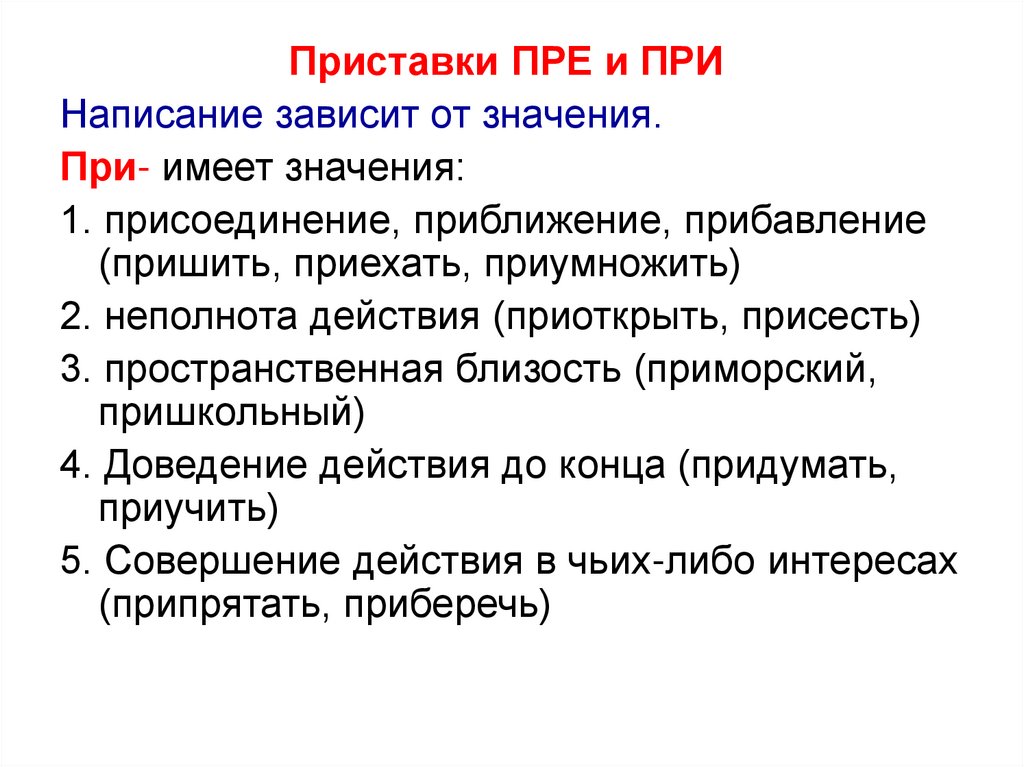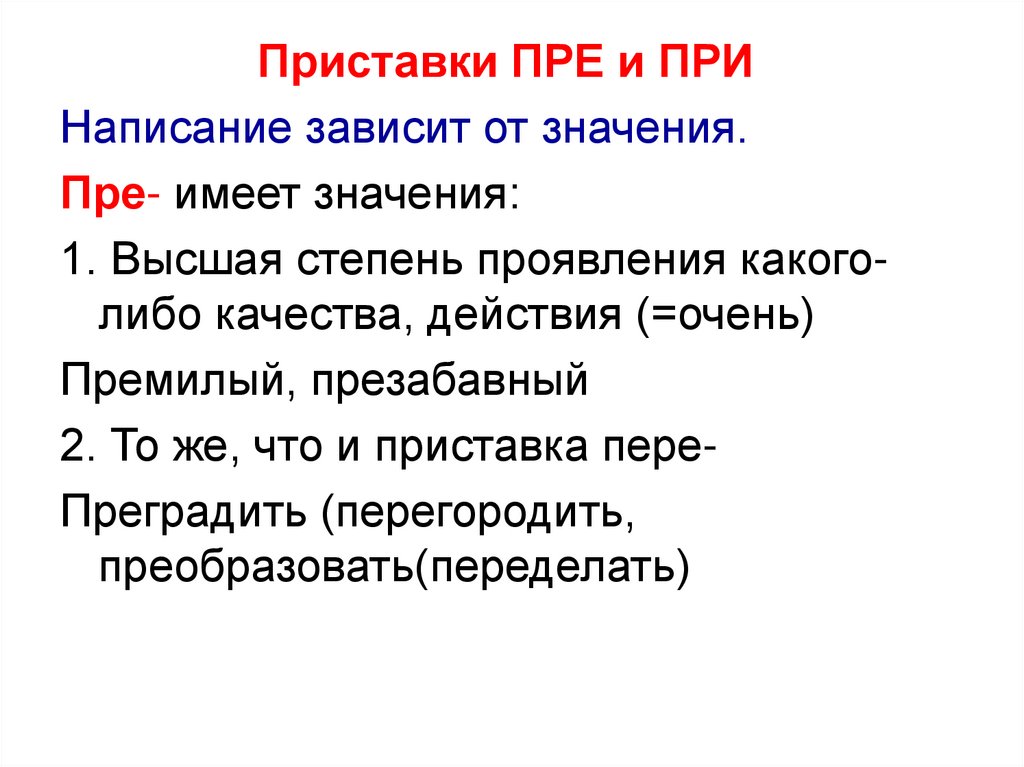 Правописание слов с приставками ПРЕ и ПРИ, котороезависит от значения