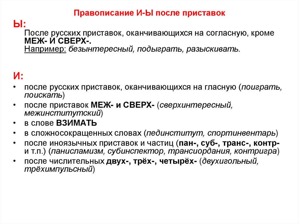 Правописание И-Ы после приставокЫ: