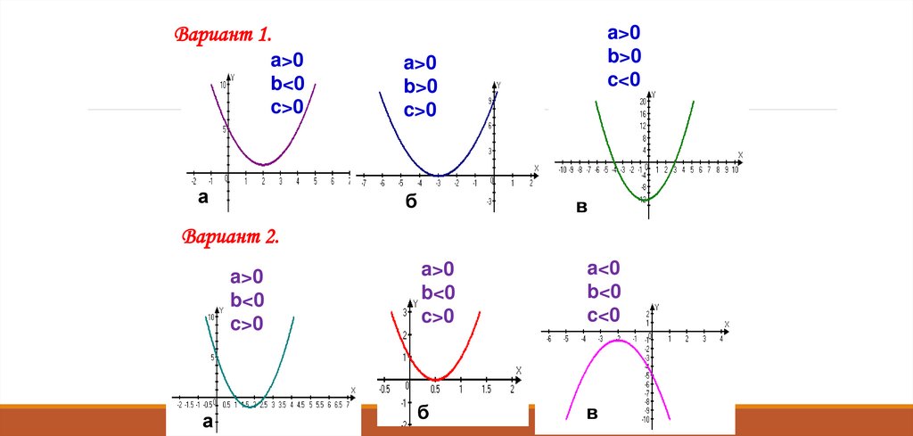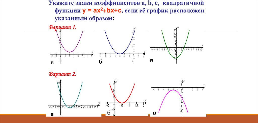 Укажите знаки коэффициентов a, b, c, квадратичной2