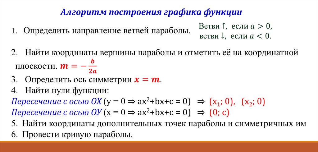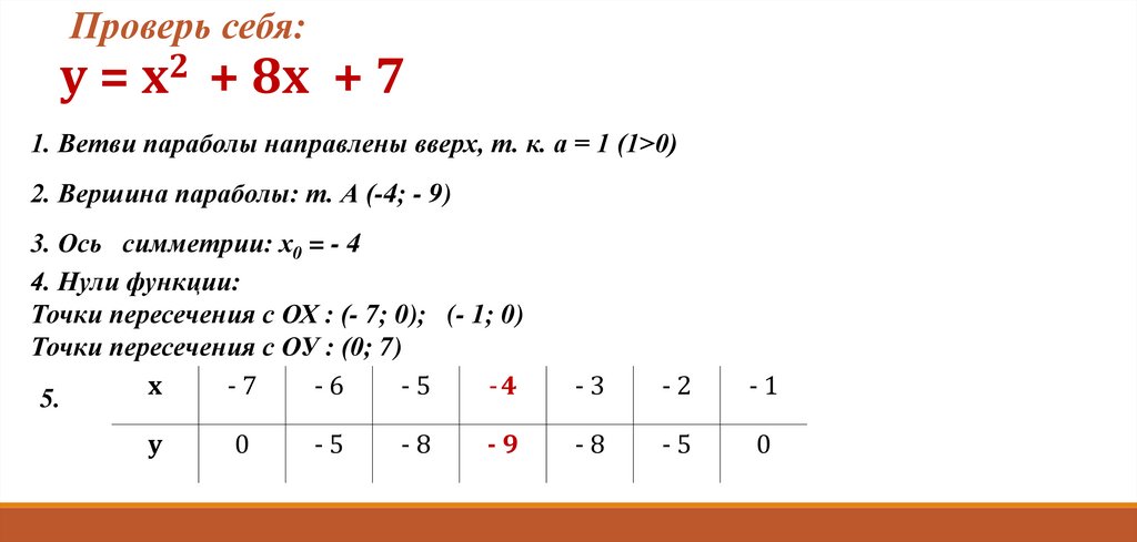 1. Ветви параболы направлены вверх, т. к. а = 1 (1>0)