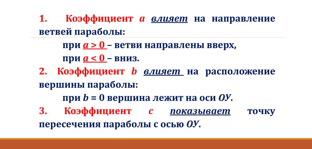 1.Коэффициент а влияет на направление