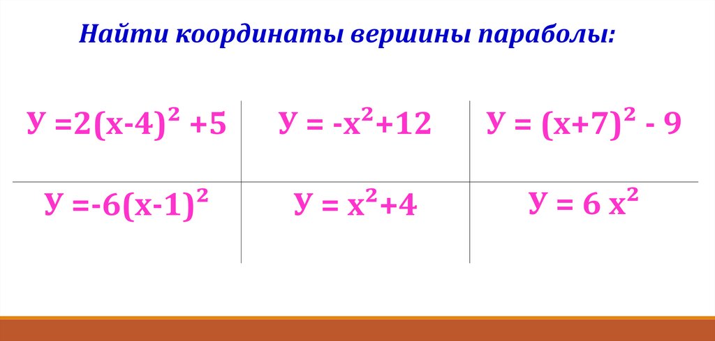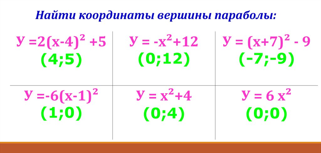 вершины параболы: