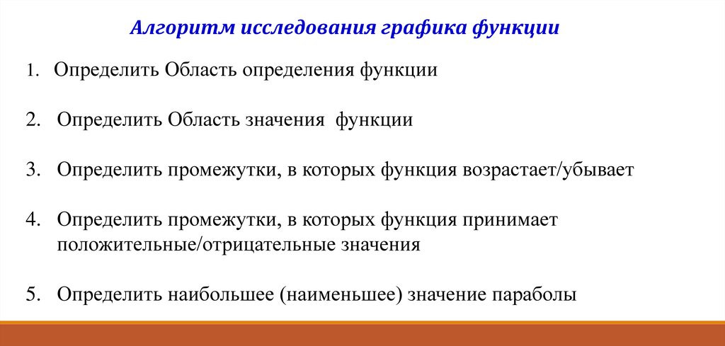 Алгоритм исследования графика функции1. Определить Область определения функции