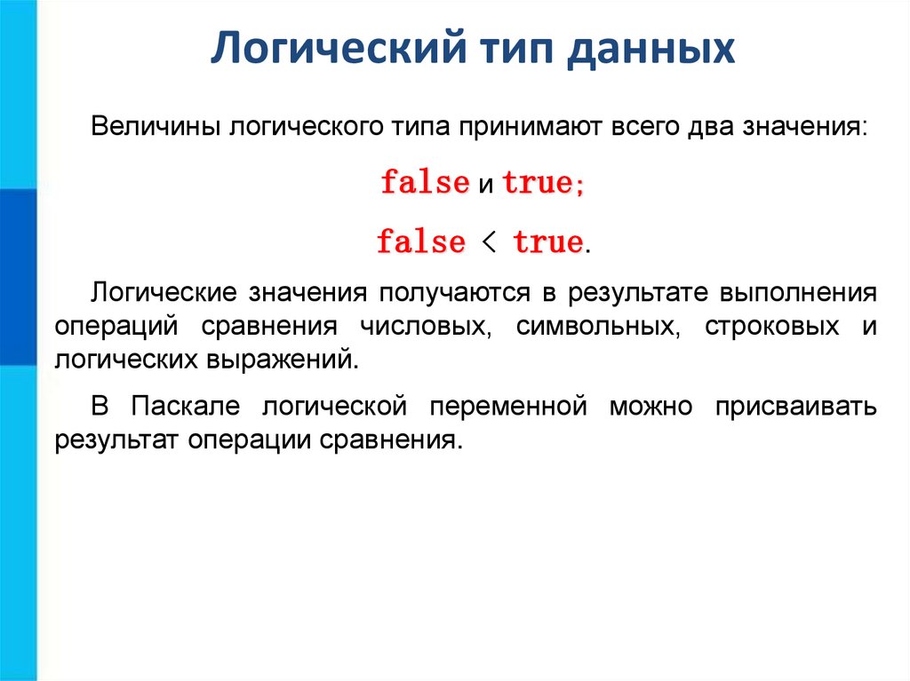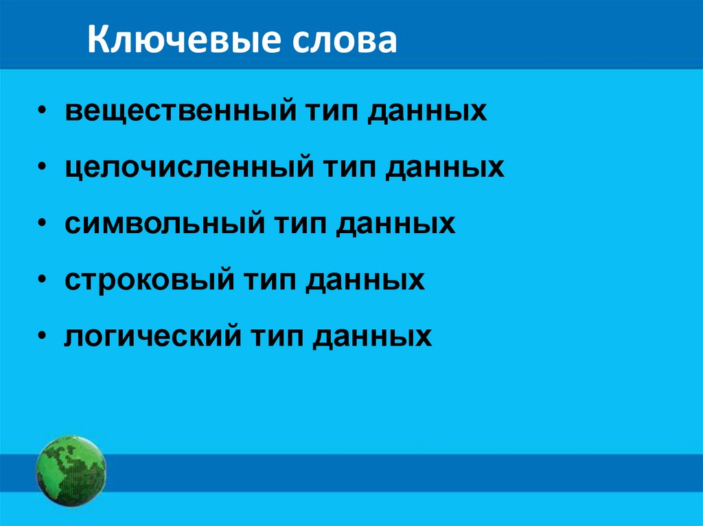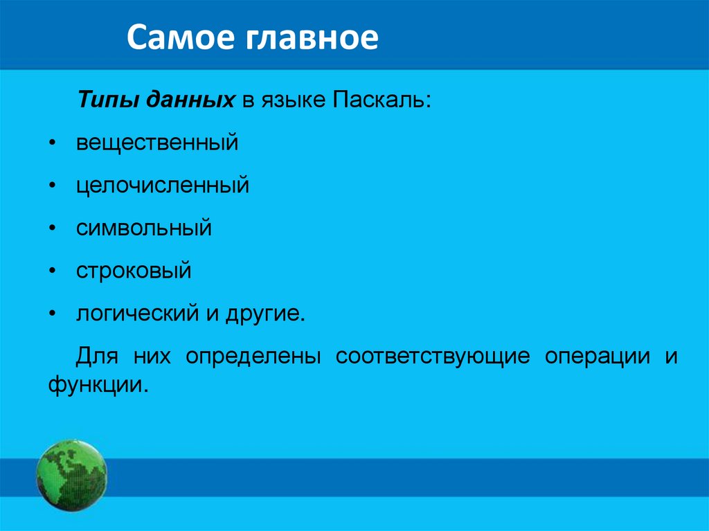 Опорный конспектТипы данных в языке Паскаль: вещественный,