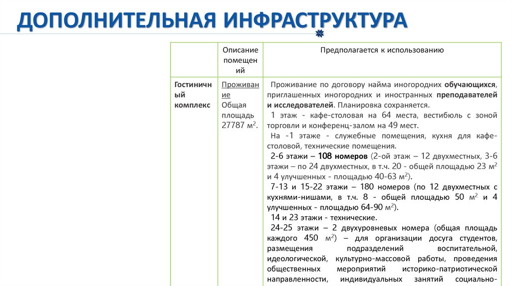 ДОПОЛНИТЕЛЬНАЯ ИНФРАСТРУКТУРАОписание