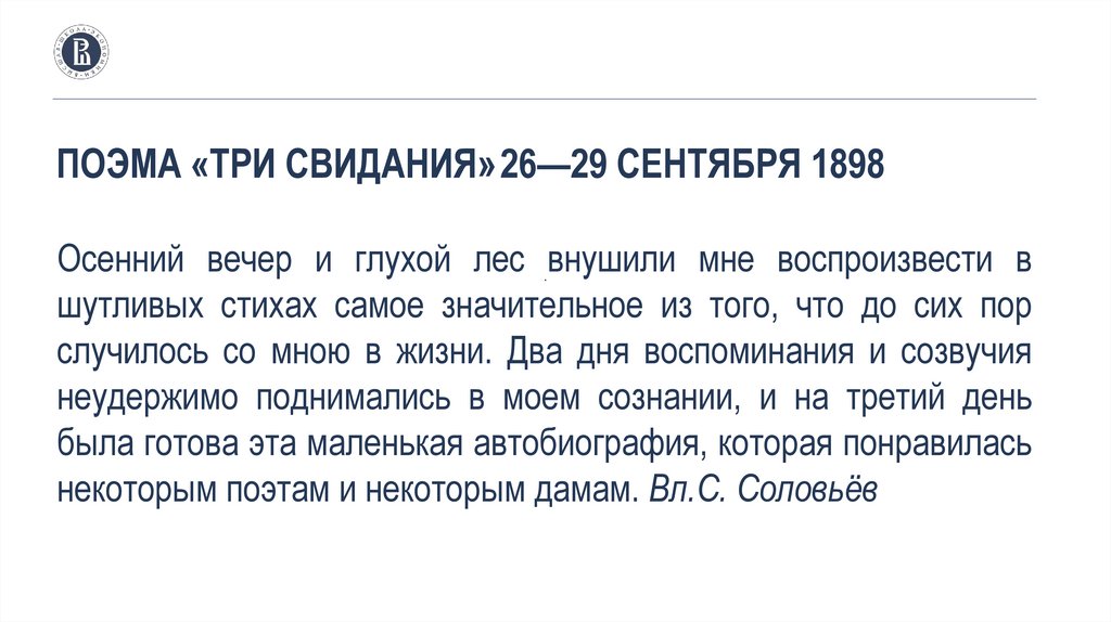ПОЭМА «ТРИ СВИДАНИЯ» 26—29 СЕНТЯБРЯ 1898Осенний вечер и глухой лес .внушили мне воспроизвести в
