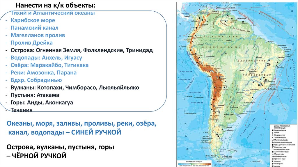 Нанести на к/к объекты:- Тихий и Атлантический океаны