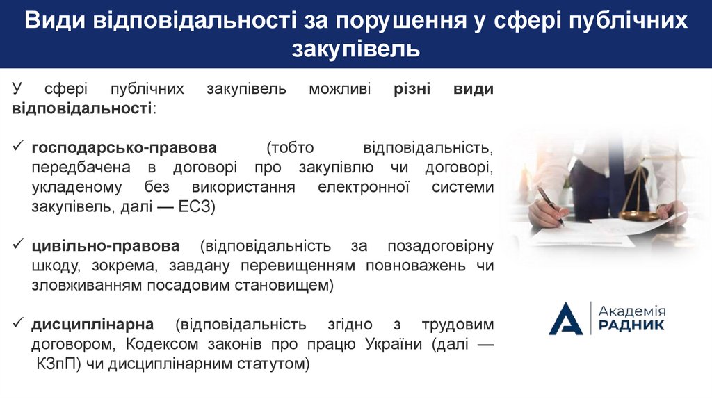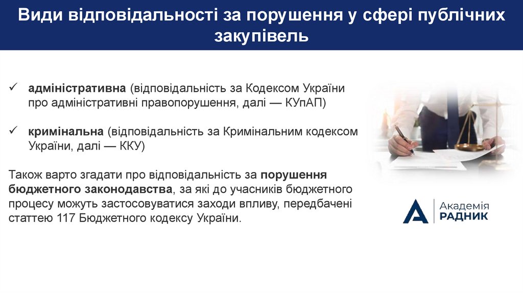 Види відповідальності за порушення у сфері публічнихзакупівель