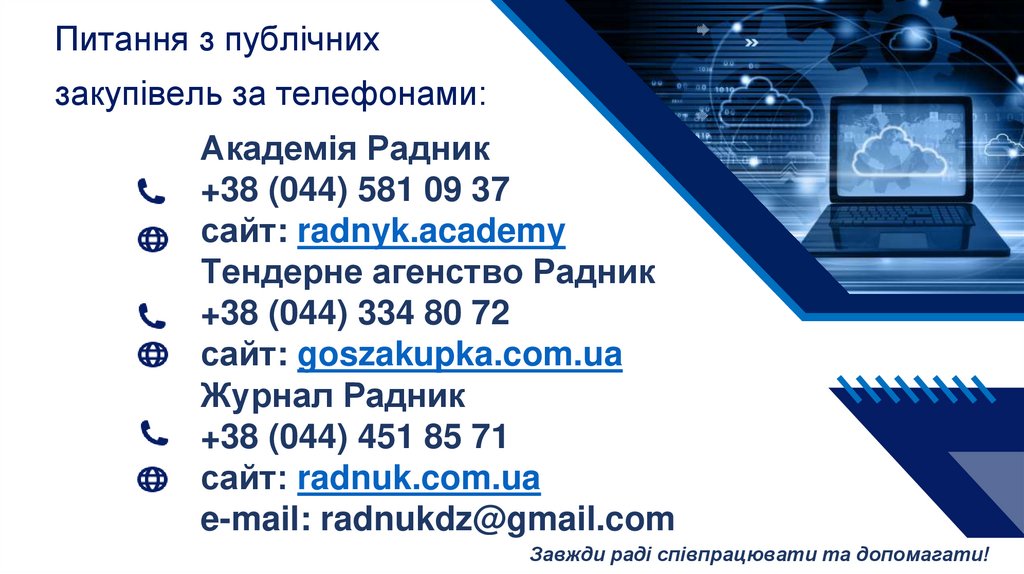 Питання з публічнихзакупівель за телефонами: