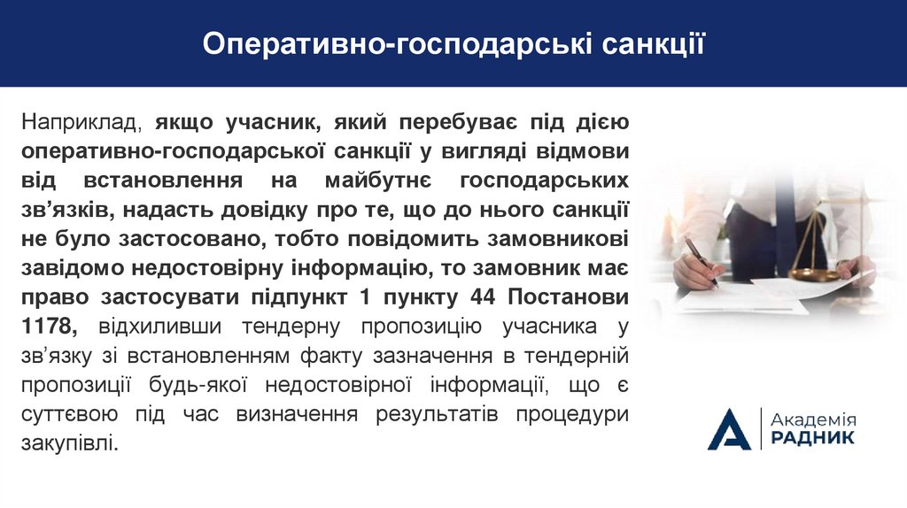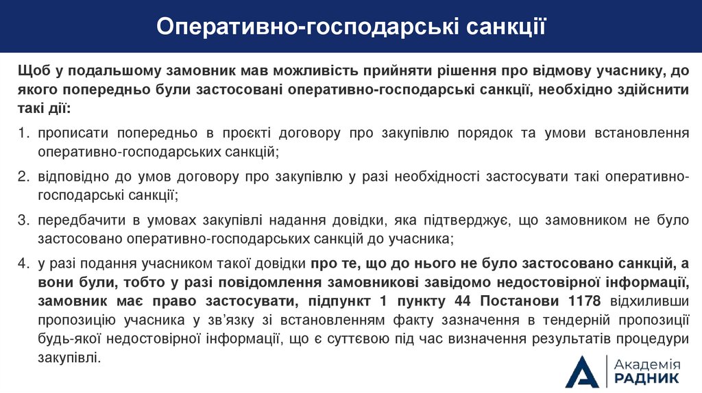 Оперативно-господарські санкціїЩоб у подальшому замовник мав можливість прийняти рішення про відмову учаснику, до