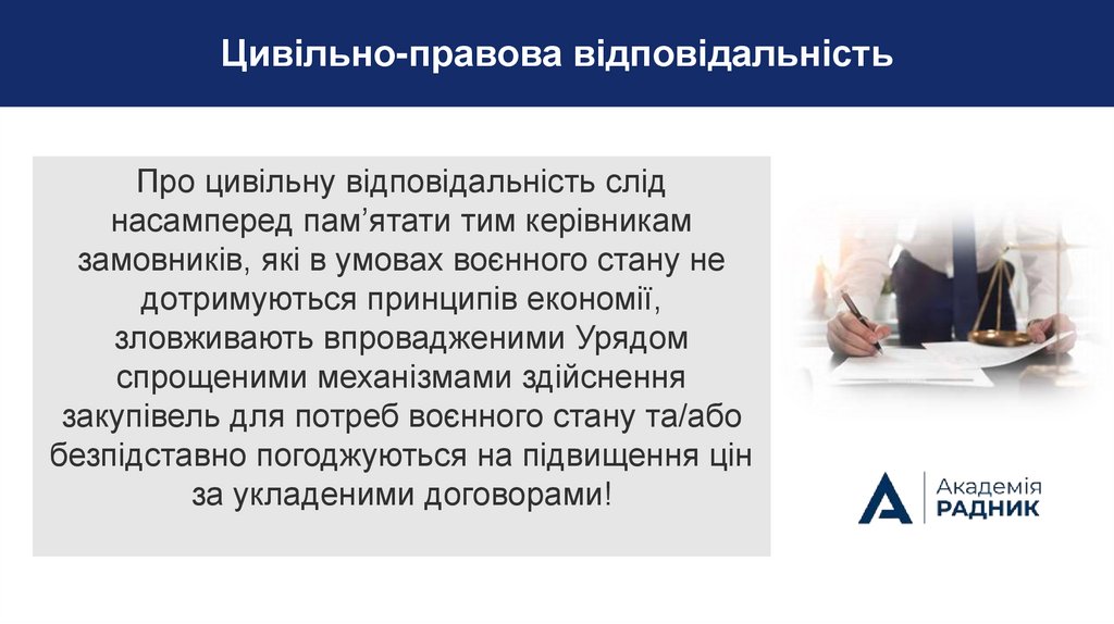 Цивільно-правова відповідальністьПро цивільну відповідальність слід