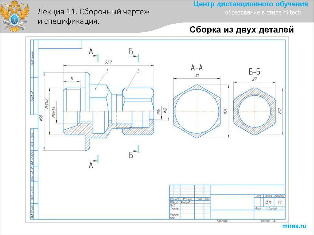 Центр дистанционного обученияЛекция 11. Сборочный чертеж
