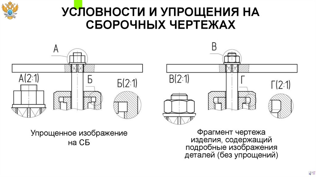 УСЛОВНОСТИ И УПРОЩЕНИЯ НАСБОРОЧНЫХ ЧЕРТЕЖАХ