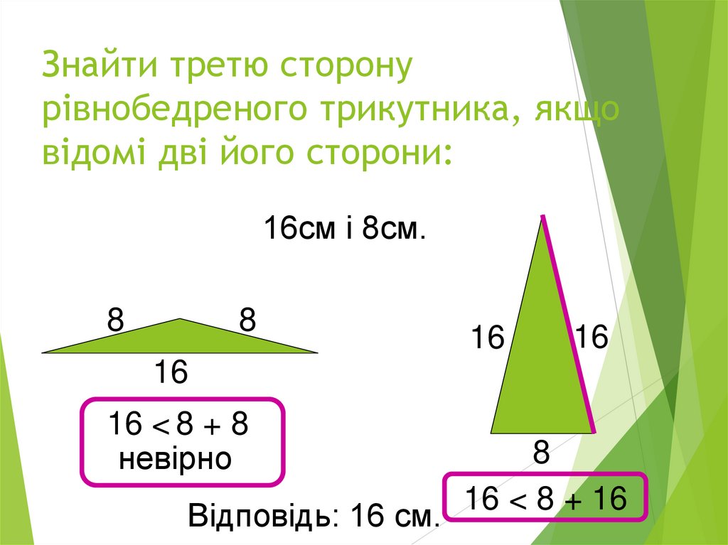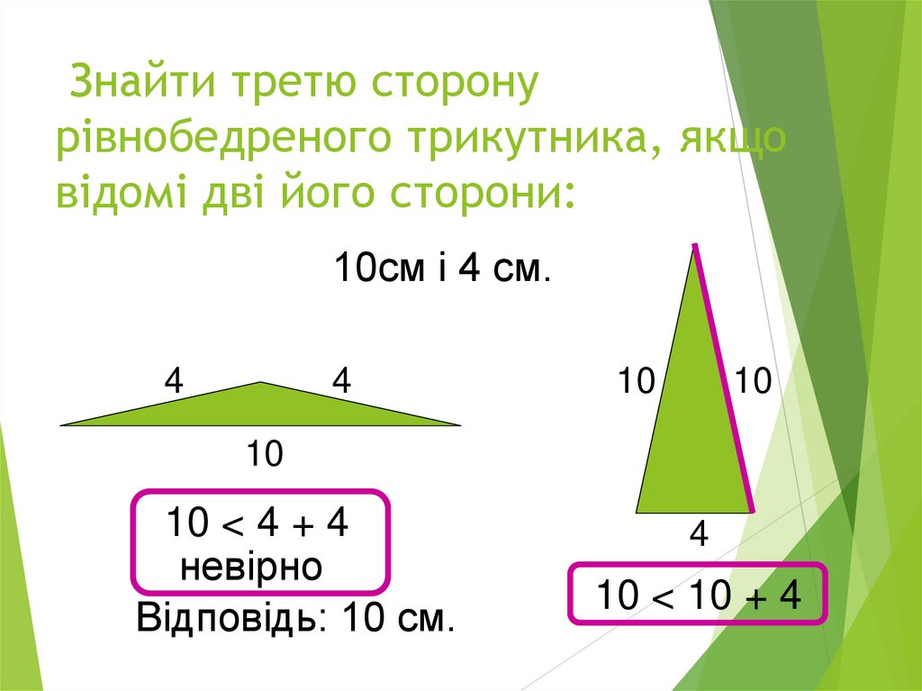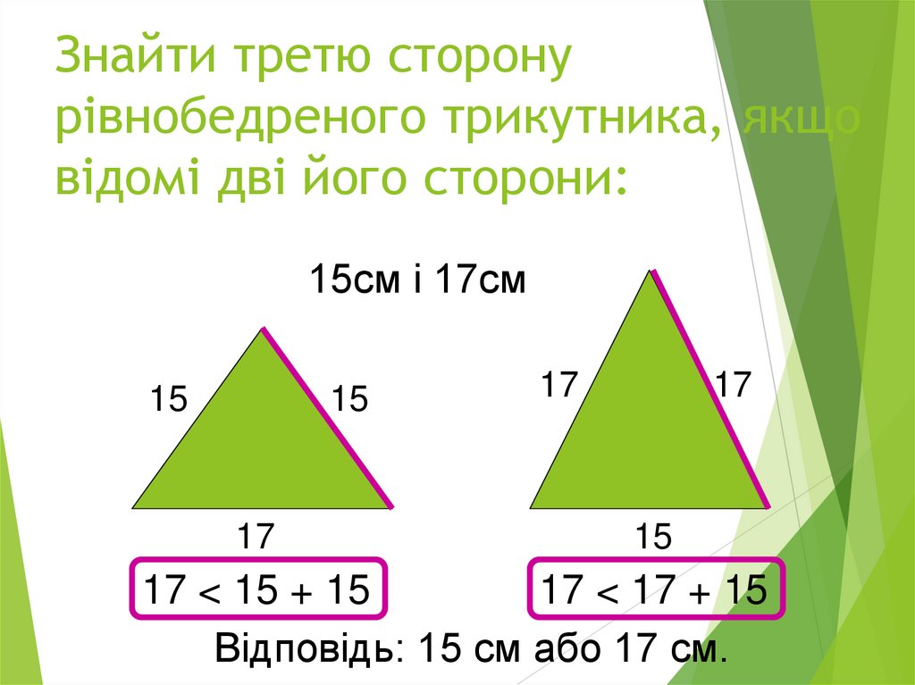 Знайти третю сторонурівнобедреного трикутника, якщо