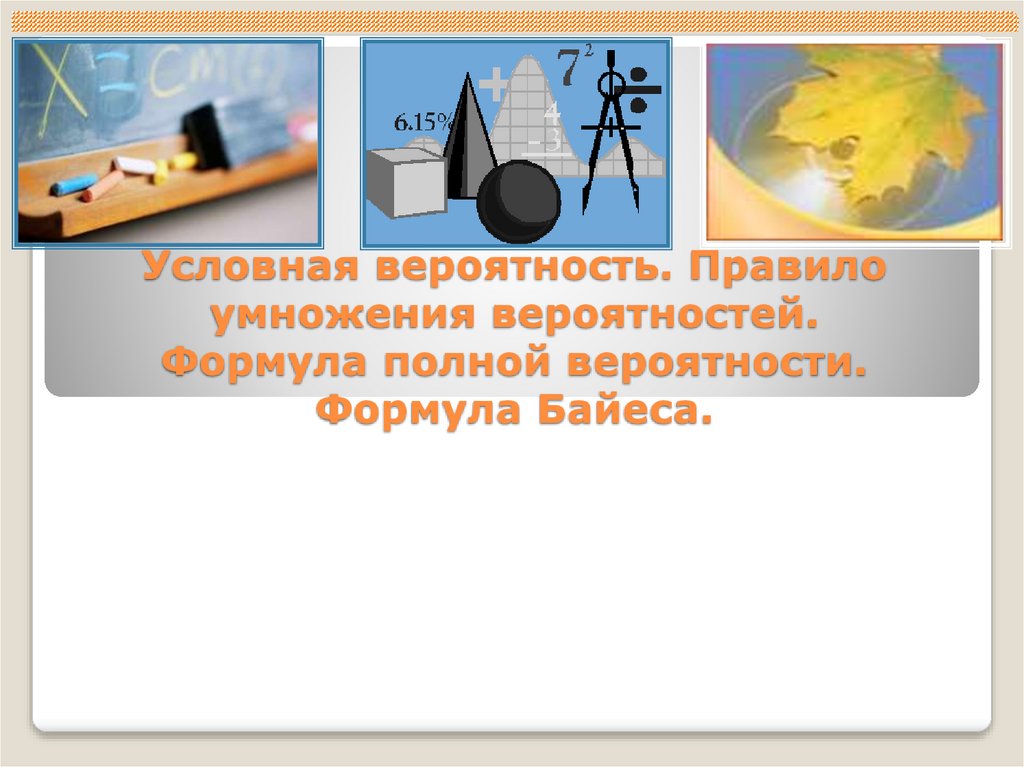 1. Условная вероятность. Правило умножения вероятностей. Формула полной вероятности. Формула Байеса.