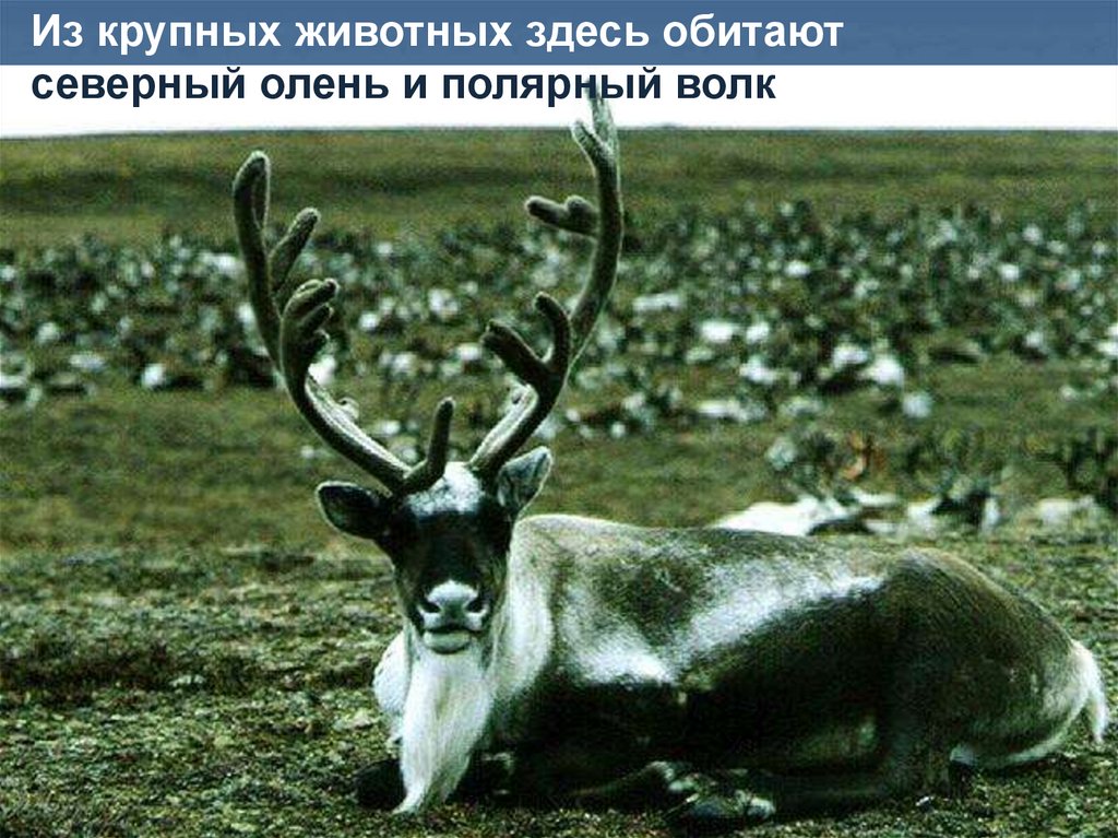 Из крупных животных здесь обитаютсеверный олень и полярный волк