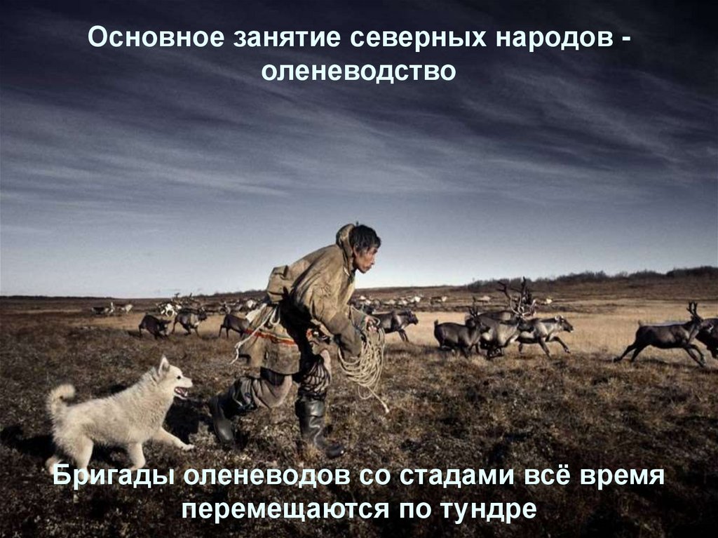 Основное занятие северных народов оленеводствоБригады оленеводов со стадами всё время