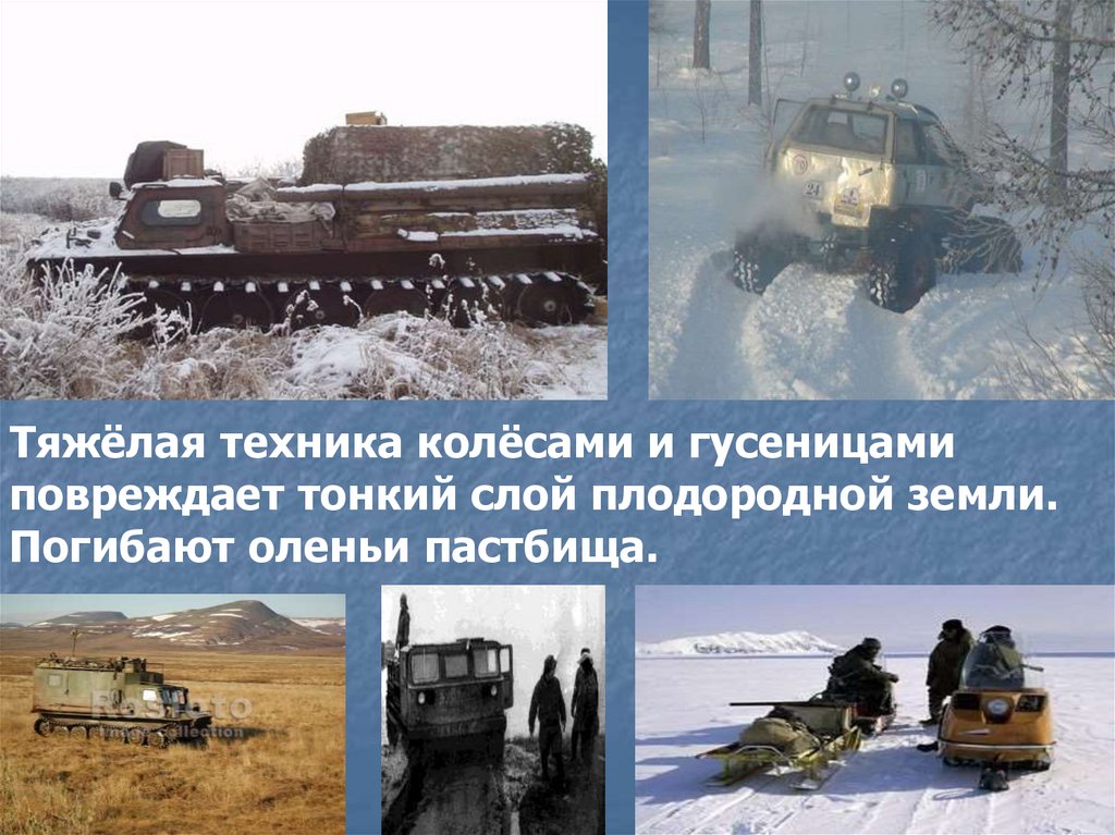 Тяжёлая техника колёсами и гусеницамиповреждает тонкий слой плодородной земли.