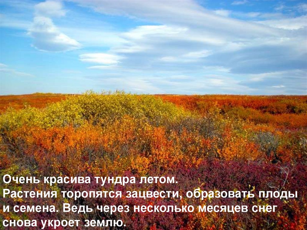 Очень красива тундра летом.Растения торопятся зацвести, образовать плоды