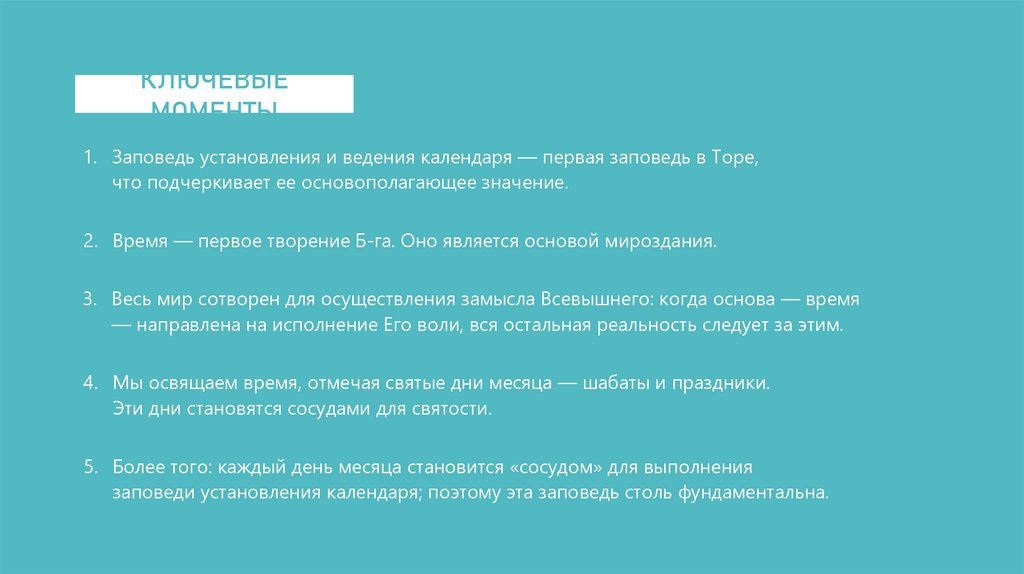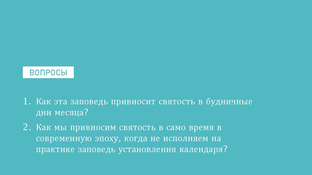 4. Мы освящаем время, отмечая святые дни месяца — шабаты и праздники.