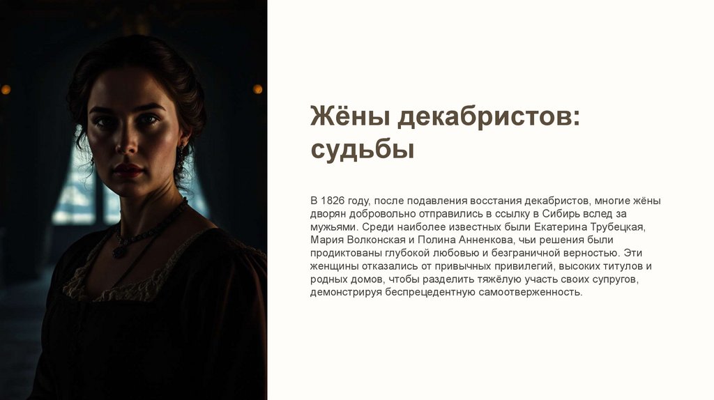 В 1826 году, после подавления восстания декабристов, многие жёны