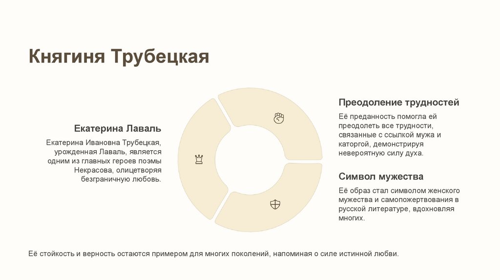 княгини Трубецкой, описывая её решимость, страдания и