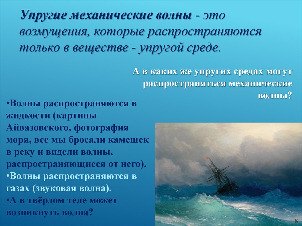 Упругие механические волны - этовозмущения, которые распространяются