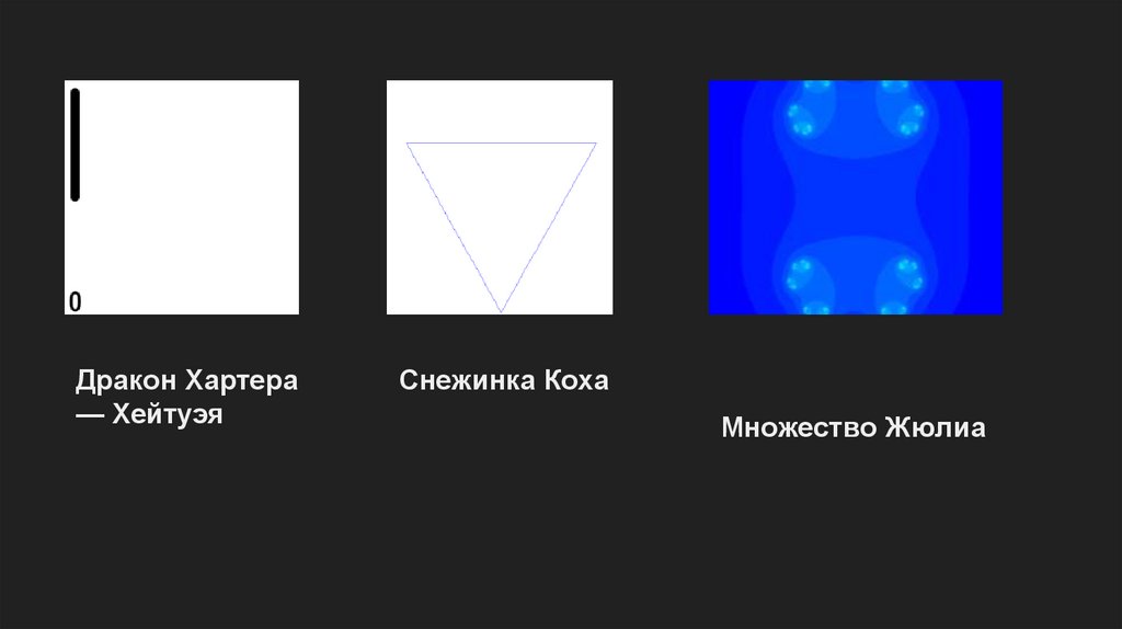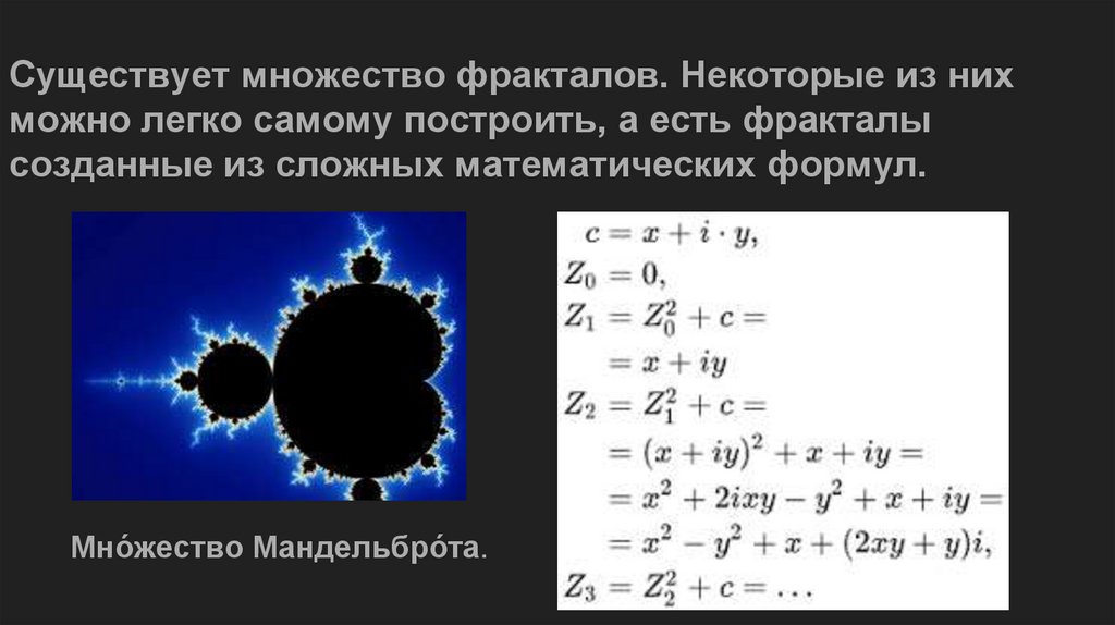 Существует множество фракталов. Некоторые из нихможно легко самому построить, а есть фракталы