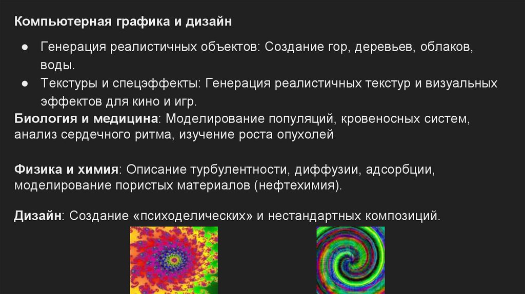 Компьютерная графика и дизайн● Генерация реалистичных объектов: Создание гор, деревьев, облаков,