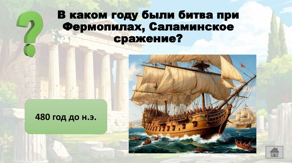 В каком году были битва приФермопилах, Саламинское