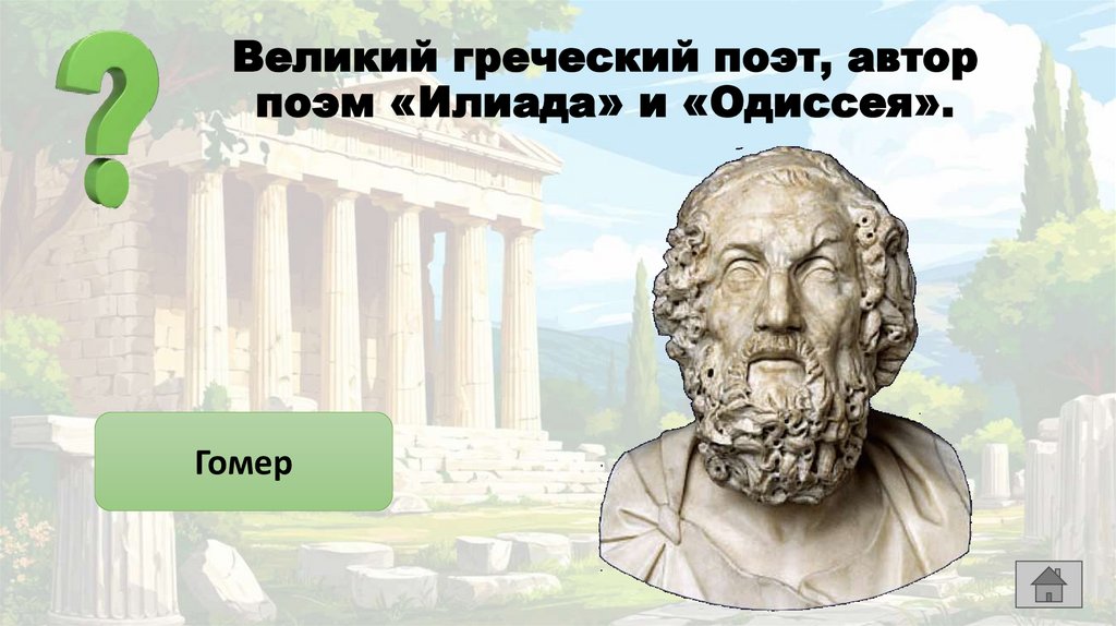 Великий греческий поэт, авторпоэм «Илиада» и «Одиссея».