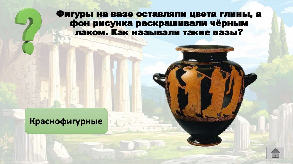 Фигуры на вазе оставляли цвета глины, афон рисунка раскрашивали чёрным