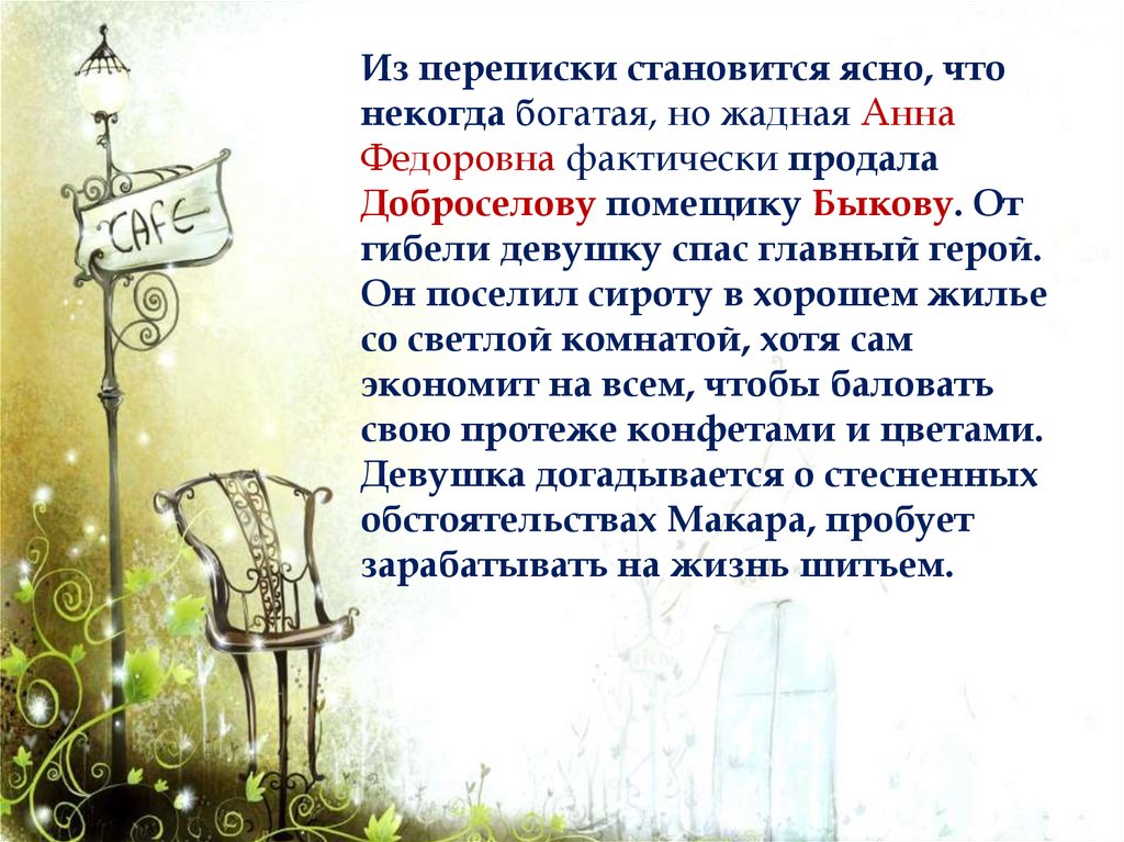 Из переписки становится ясно, чтонекогда богатая, но жадная Анна