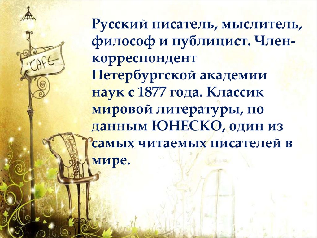 Русский писатель, мыслитель,философ и публицист. Членкорреспондент