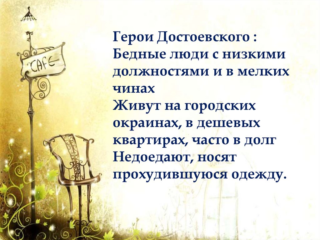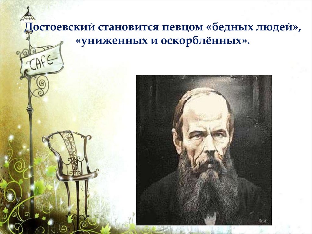 Достоевский становится певцом «бедных людей»,«униженных и оскорблённых».