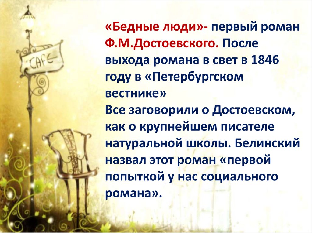 «Бедные люди»- первый романФ.М.Достоевского. После