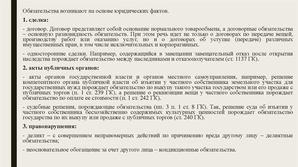 Обязательства возникают на основе юридических фактов.1. сделка:
