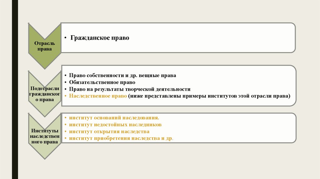 гражданског • Наследственное право (ниже представлены примеры институтов этой отрасли права)
