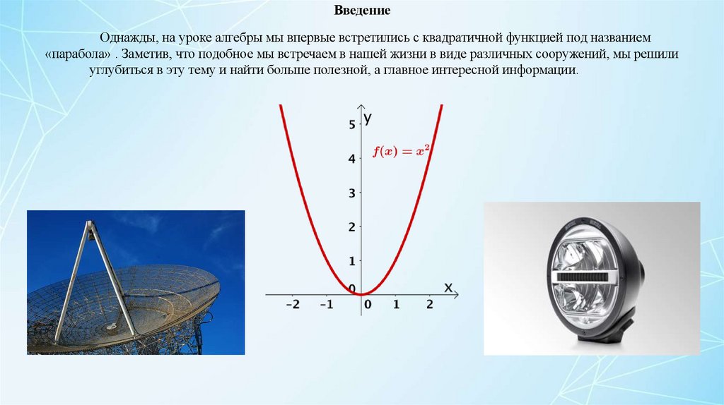 ВведениеОднажды, на уроке алгебры мы впервые встретились с квадратичной функцией под названием