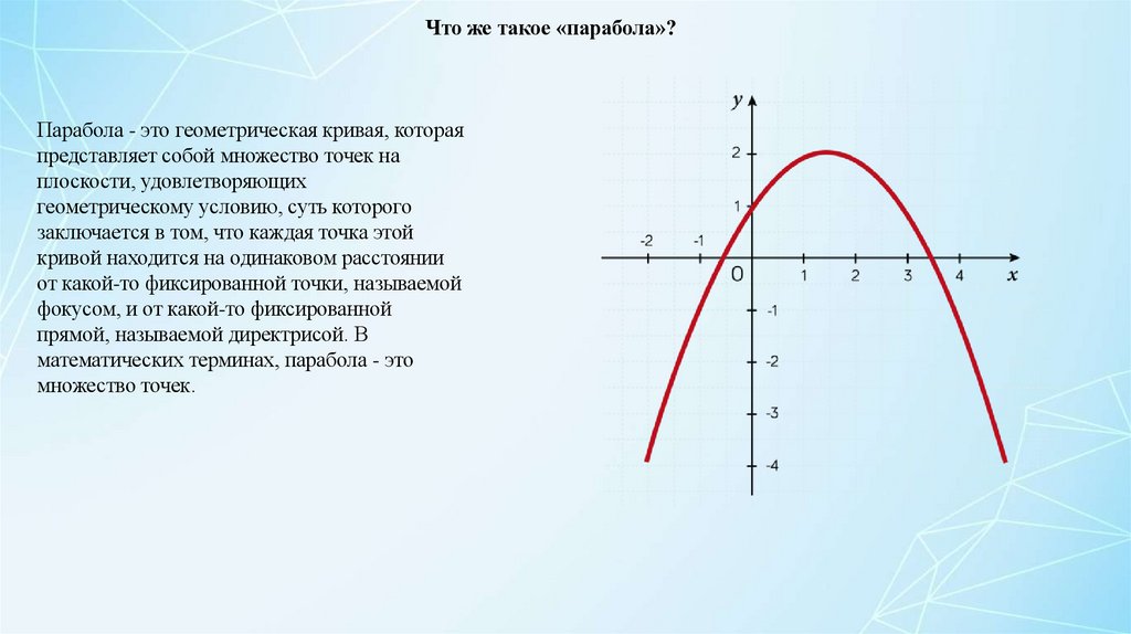 Что же такое «парабола»?Парабола - это геометрическая кривая, которая