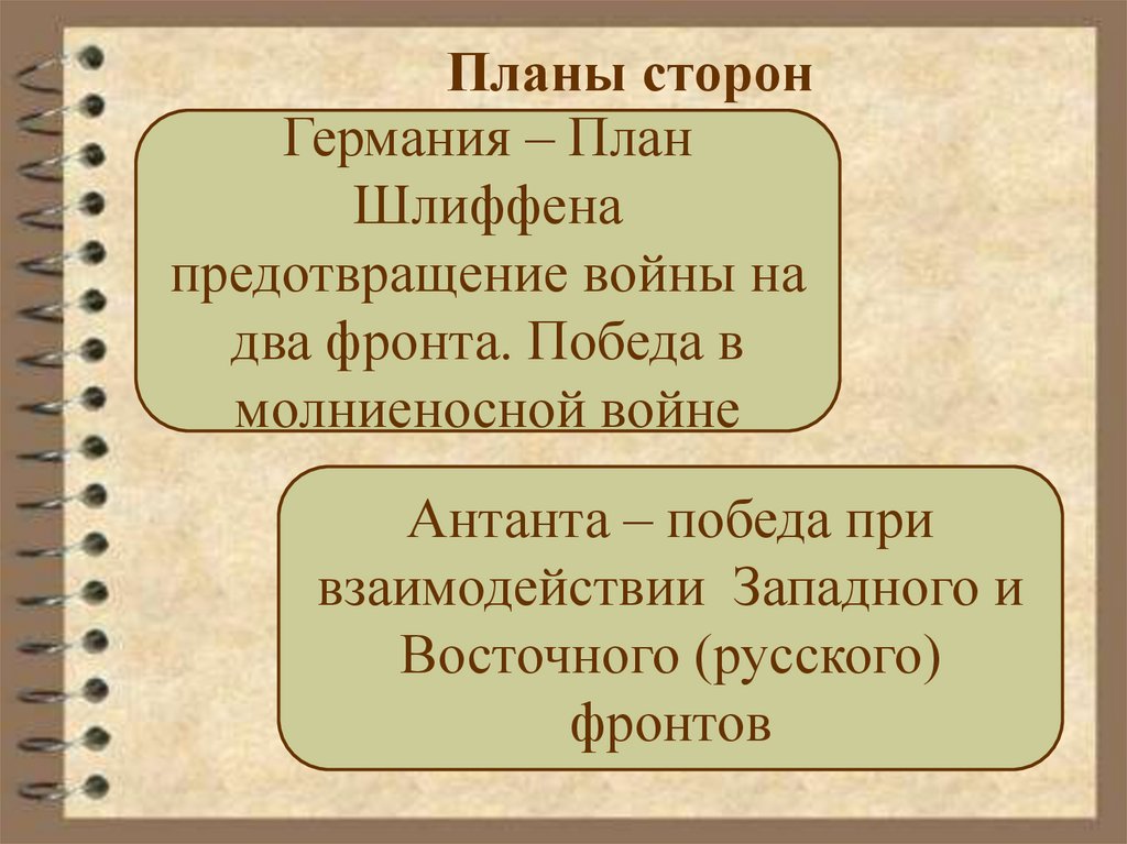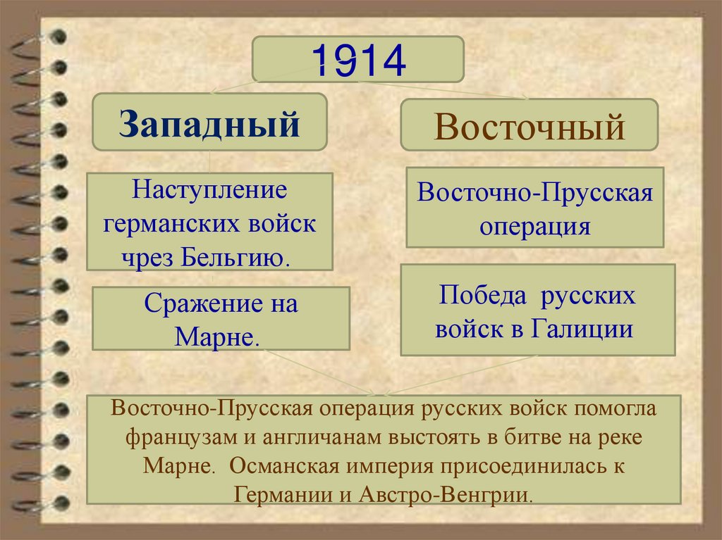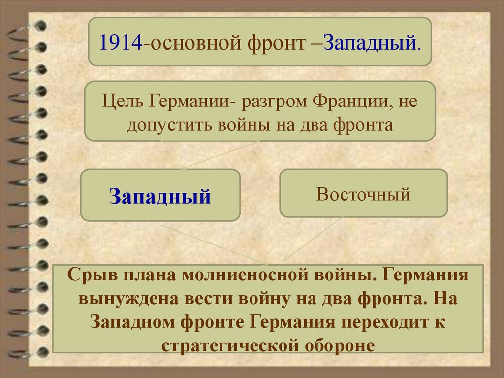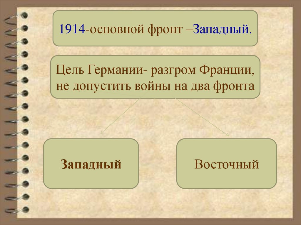 1914-основной фронт –Западный.Цель Германии- разгром Франции, не